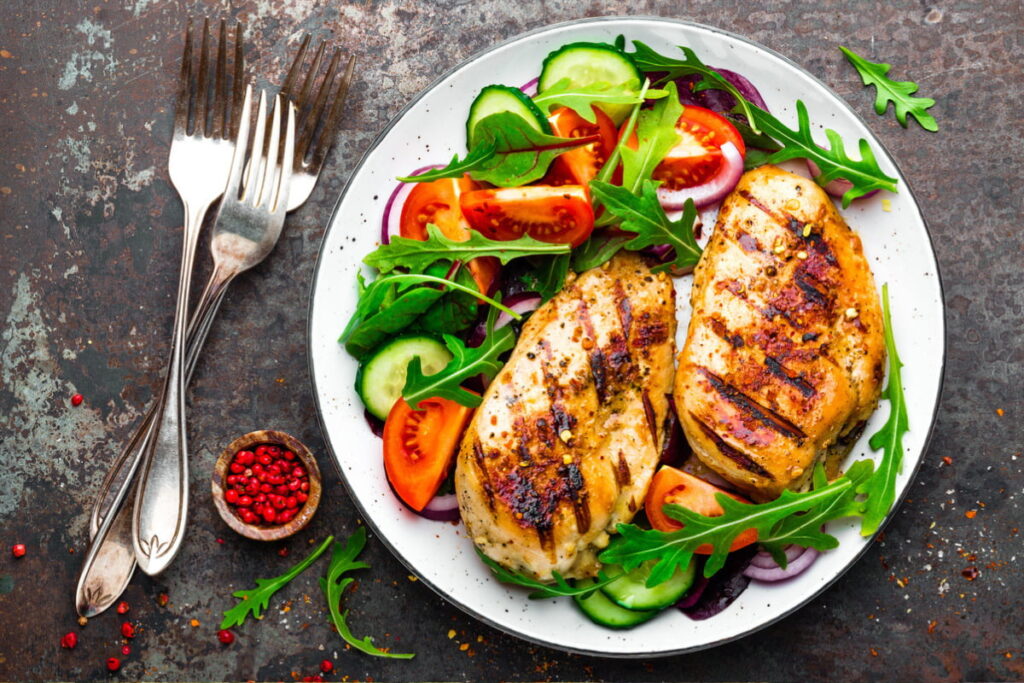 - Peito de frango grelhado com temperos naturais.